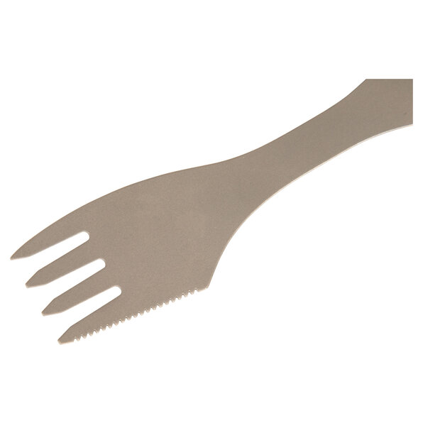 Vervaardigd van hoogwaardig titanium, met afgeronde randen en een ergonomische lepelgeometrie. Dankzij de multifunctionaliteit bespaar je extra gewicht.